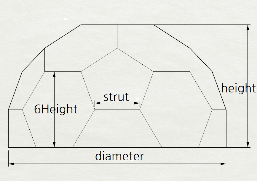 Wood Dome Previous Next Dome Type 커넥터로 만들수 있는 돔 모델 주문시 어떤 모델을 원하시는 알려주세요. Previous Next 모델 A 가장 경제적인 형태 한변의 길이 1.1m 최적총 커넥터 수량 : 40개알루미늄커넥터 : 30개 모델A 바닥커넥터 : 10개 모델B 디자인 Good 한변의 길이 1.1m 최적총 커넥터 수량 : 50개알루미늄커넥터 : 40개 모델B 바닥커넥터 : 10개 모델 C 수직문 구조 한변의 길이 1.1m 최적총 커넥터 수량 : 46개알루미늄커넥터 : 36개 모델C 바닥커넥터 : 10개 모델 D 축구공과 동일한 구형태 총 커넥터 수량 : 60개목재길이 증가시 크기증가 Dome Size : 육각형 높이가 문 높이 이므로 목재 1.1m 를 추천 목재(mrut0.50.880.911.051.11.21.251.31.4높이(m)Height1.382.422.482.752.893.033.303.443.583.856높이(m)6Height0.871.521.561.731.821.912.082.172.252.42넓이(㎡)4.4913.9014.5317.9419.7821.7125.8428.0430.3235.17직경(m)diameter2.394.214.304.785.025.265.745.986.226.69 목재 재단 도면 ( Strut drawing) 010 9985 2218 Dealership Related Enquiries